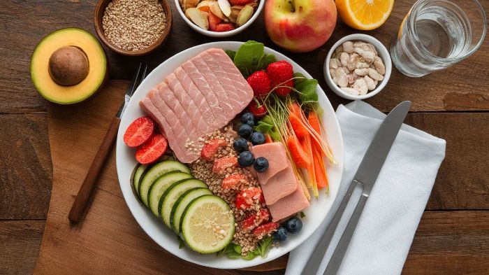 | Lunch | Grilled salmon, quinoa, and steamed broccoli |